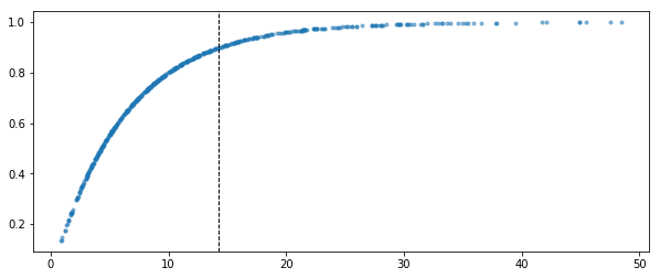 plt.axvline(14.3, color='k', linestyle='dashed', linewidth=1)